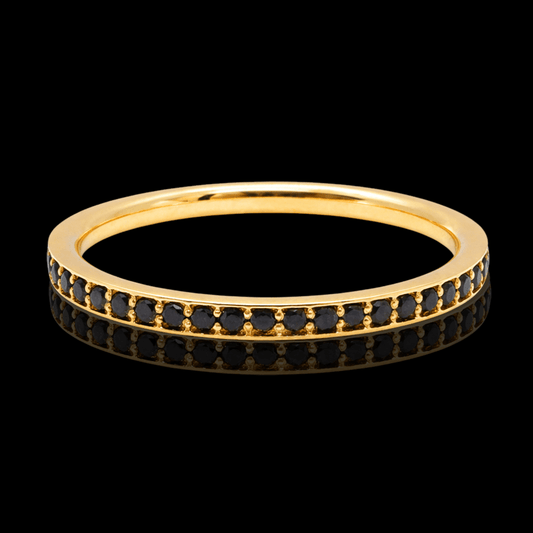 Geltono aukso žiedas su juodais deimantais ratuku