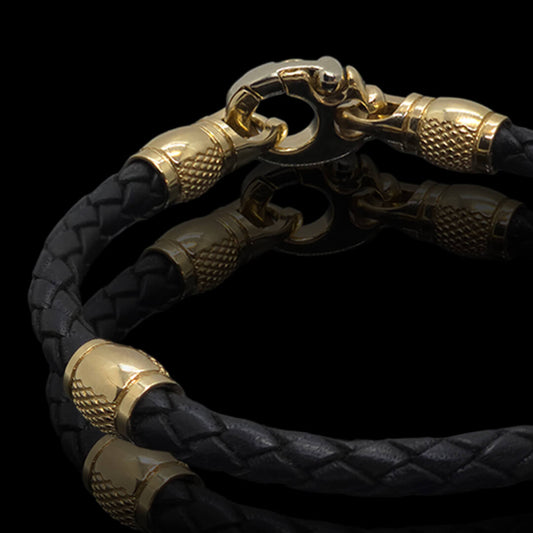 GAMINYS PARDUOTASGeltono aukso vyriška apyrankė su oda
