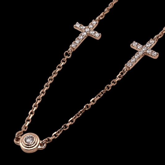 Geltonas aukso kryžiukas su deimantais - 3mm