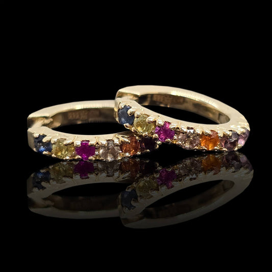 Geltono aukso auskarai rinkės su spalvotais safyrais