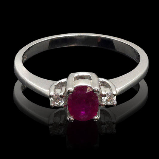 Balto aukso žiedas su rubinu ir briliantais