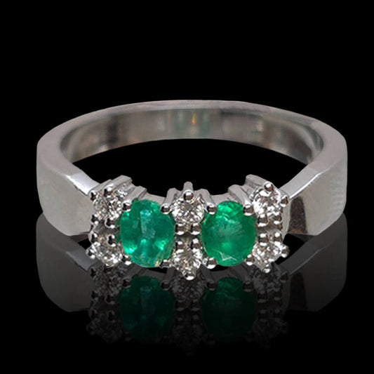 GAMINYS PARDUOTASBalto aukso žiedas su briliantais ir smaragdais