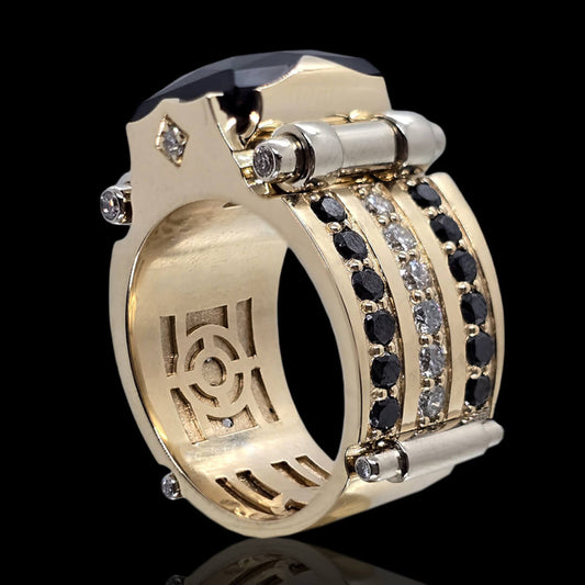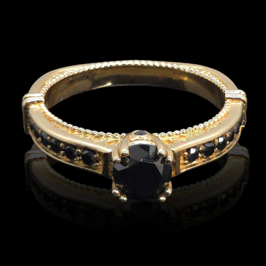 GAMINYS PARDUOTASGeltono aukso žiedas su juodais briliantais