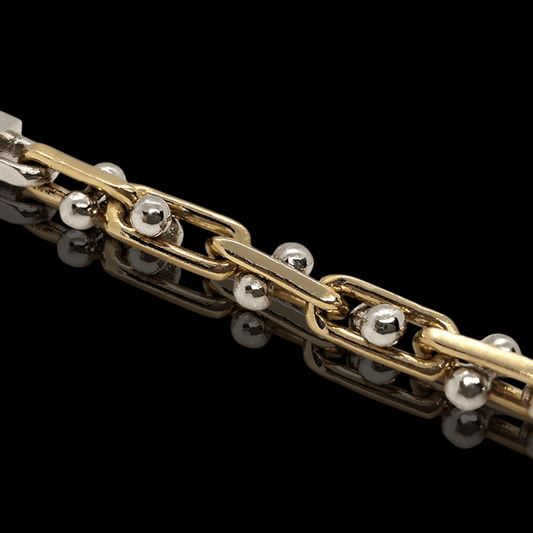 GAMINYS PARDUOTASGeltono ir balto aukso grandinėlė puošta juodais deimantais
