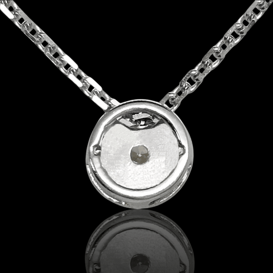Balto aukso grandinėlė su pakabuku puoštu briliantais ratuku