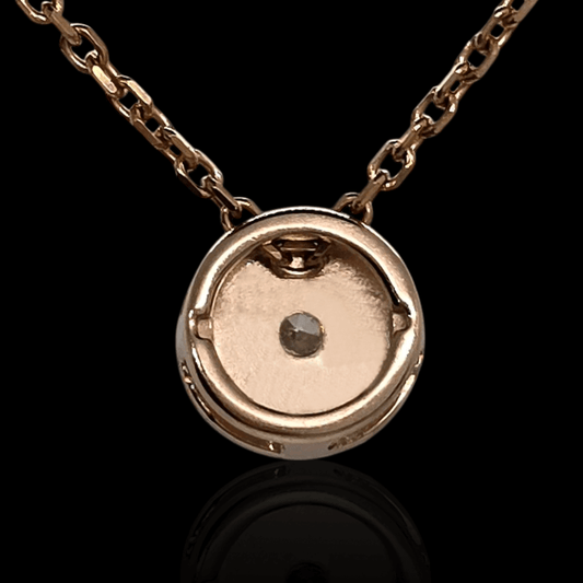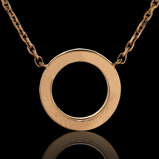 Raudono aukso grandinėlė su pakabuku puoštu briliantais ratuku