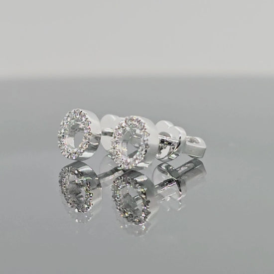 Balto aukso auskarai su deimantais. Auskarų užsegimas – varžtelio tipo, kas suteikia papildomo saugumo ir patogumo juos nešiojant. Minimalistinis dizainas ir klasikinė apvali forma leidžia deimantams skleistis visu savo žavesiu, suteikdami įvaizdžiui lengvumo bei išskirtinio švytėjimo.