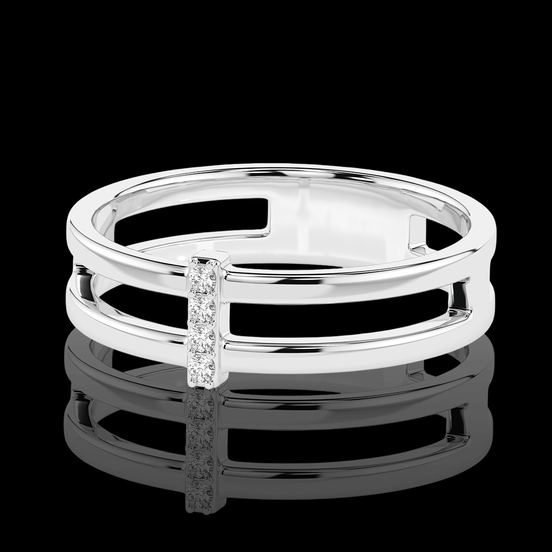 Balto aukso atviro dizaino žiedas su tarpais ir keturiais natūraliais deimantais priekyje – modernus, elegantiškas ir išraiškingas akcentas kiekvienai dienai. Turime įvairių aukso spalvų. Jei žiedo dydis netinka – susisiekite su mumis.