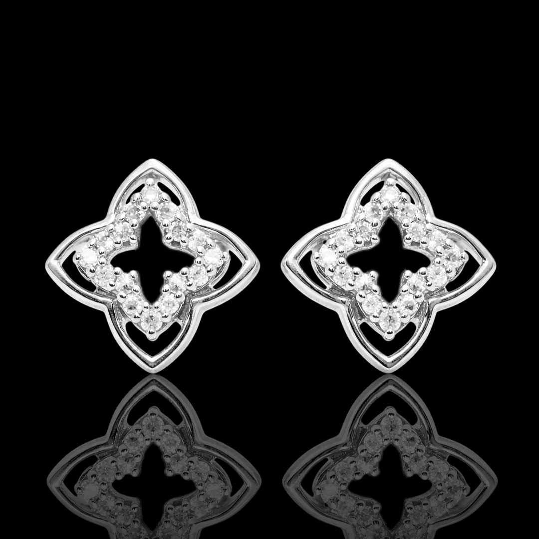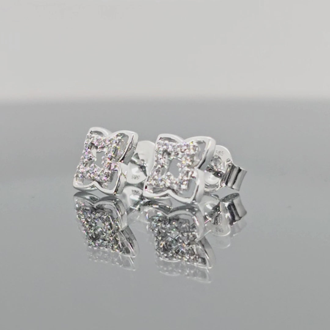 Balto aukso auskarai "Gėlytės" su deimantais
