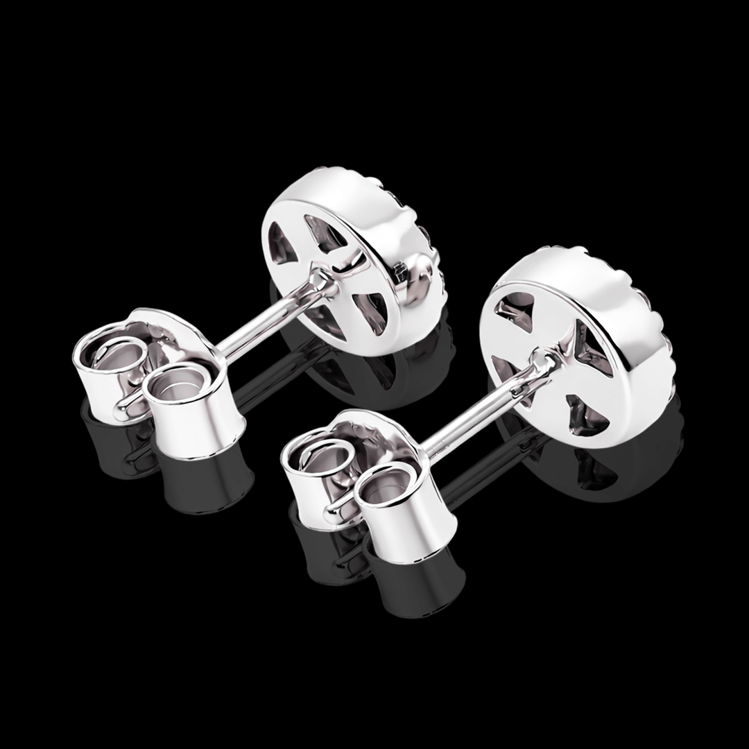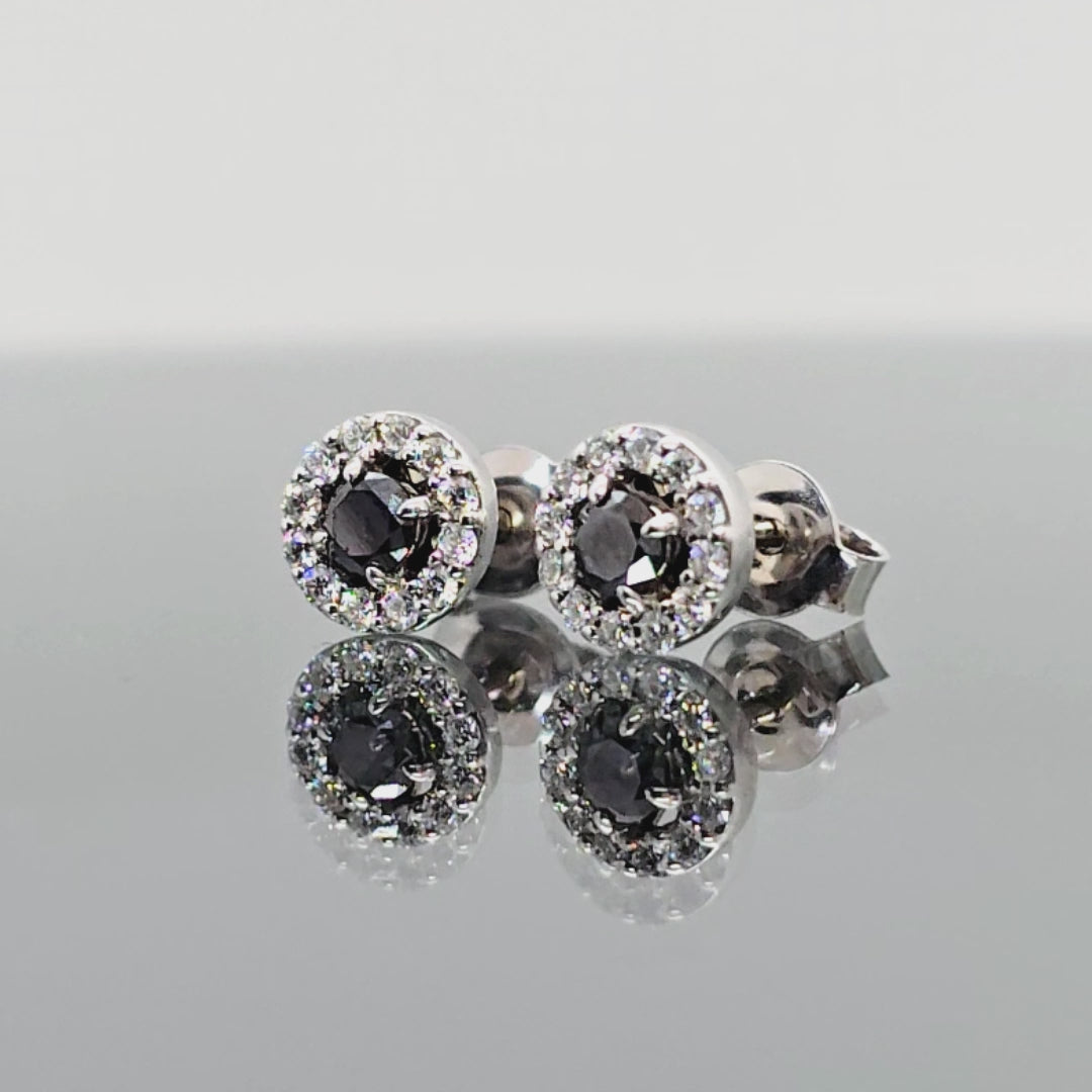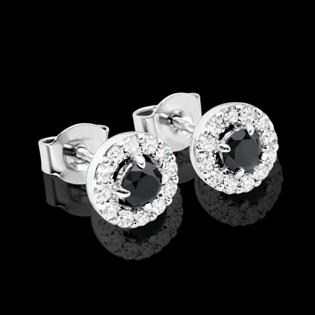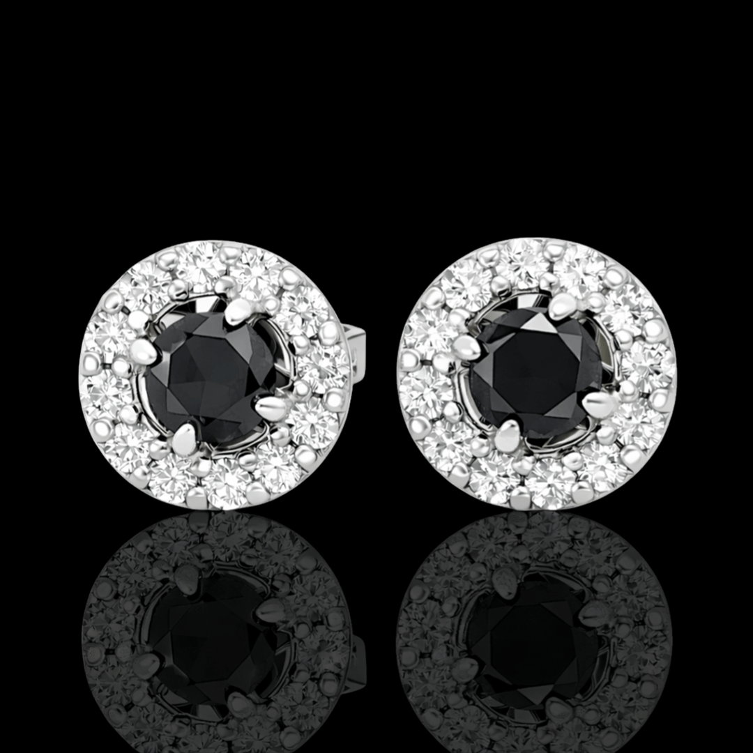 Apvalios formos balto aukso auskarai su juodu deimantu. Centre spindi didesnis juodas deimantas, o aplink jį – dailiai išdėstyti mažesni deimantai, kurie suteikia dar daugiau spindesio ir prabangos. Turime įvairių aukso spalvų.