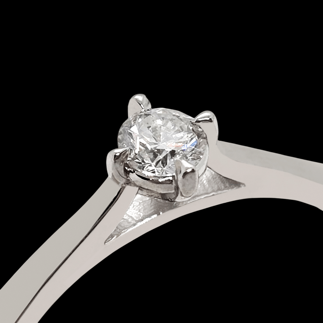 Balto aukso sužadetuvių žiedas su deimantu.