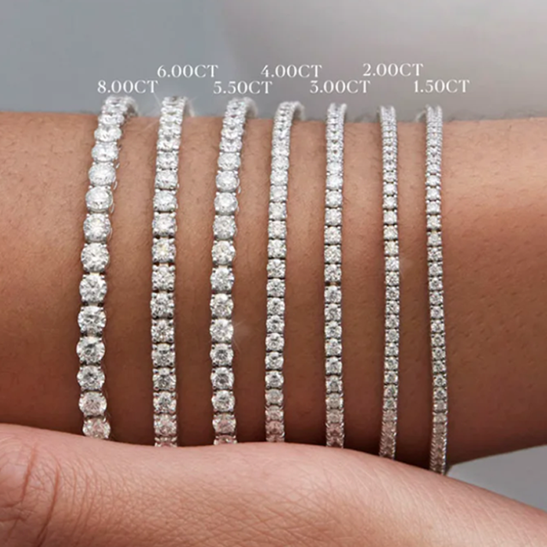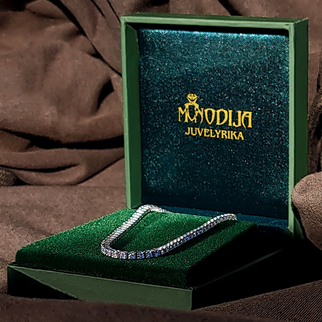 "Tennis" apyrankės yra žinomos dėl savo tolygios išvaizdos, kurioje brangakmeniai yra vienodai išdėstyti per visą apyrankės ilgį. Lentelėje galite matyti apyrankių kainas ir dydžius.