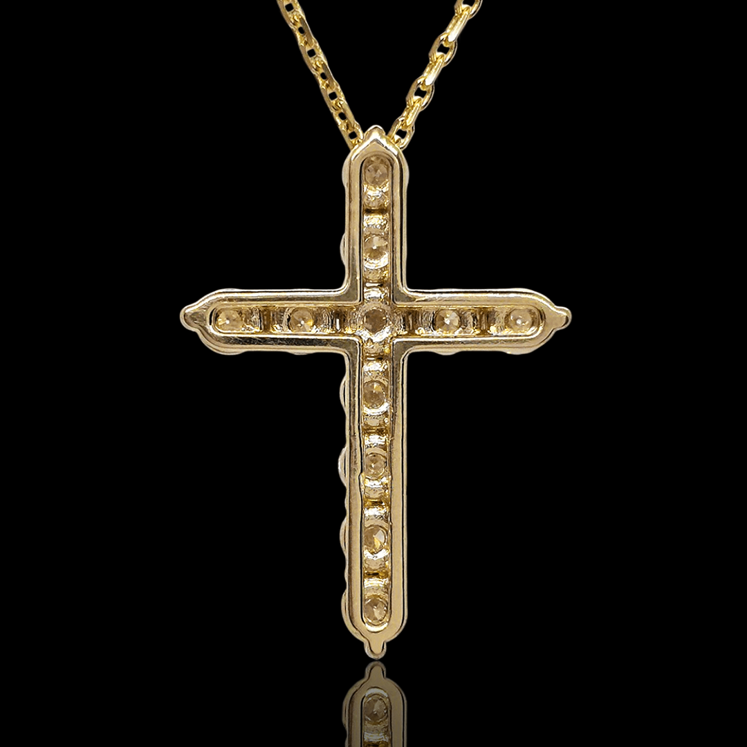 Geltonas aukso kryžiukas su deimantais - 3mm