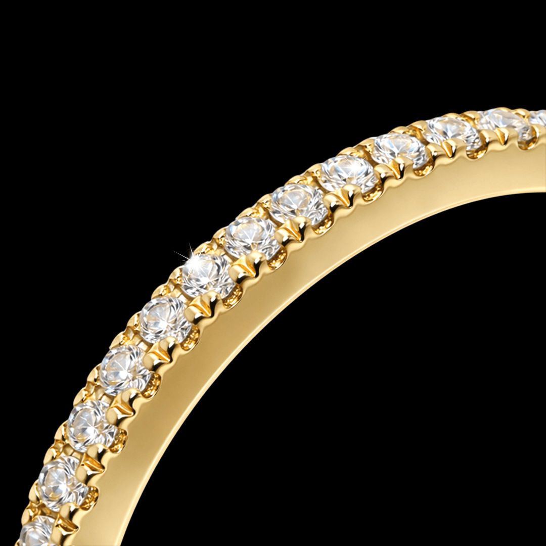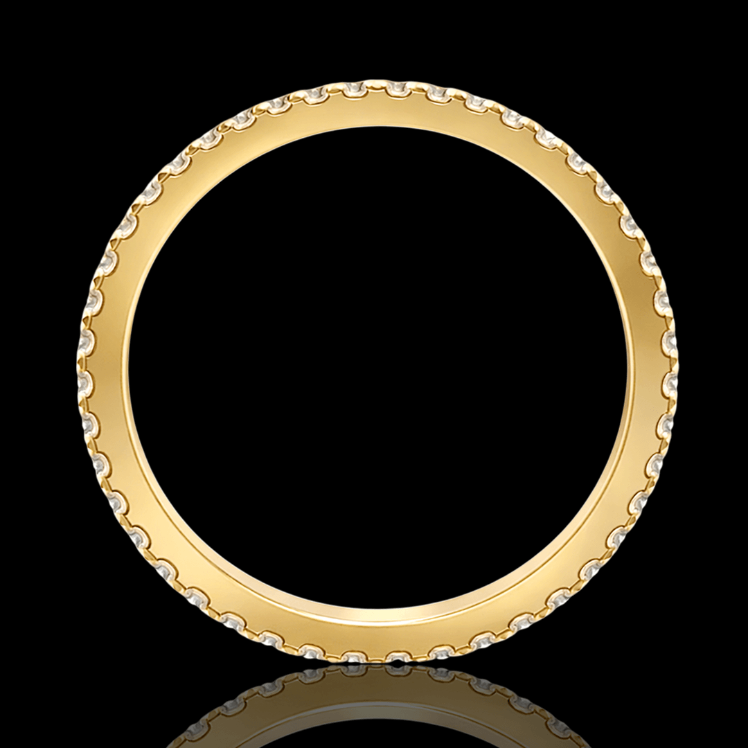 Geltono aukso žiedas su briliantais. Žiedą visu ratuku puošia 41 vienetas ypač skaidrių briliantų. Šį žiedą galime pagaminti pagal jūsų norimą dydį ar aukso spalvą, dėl užsakymo susisiekite privačiai.