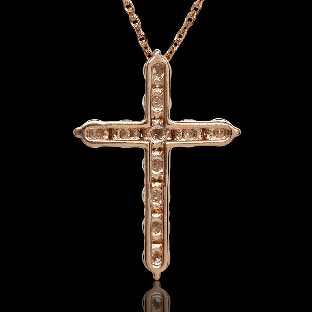 Raudono aukso kryžiukas su deimantais - 3mm