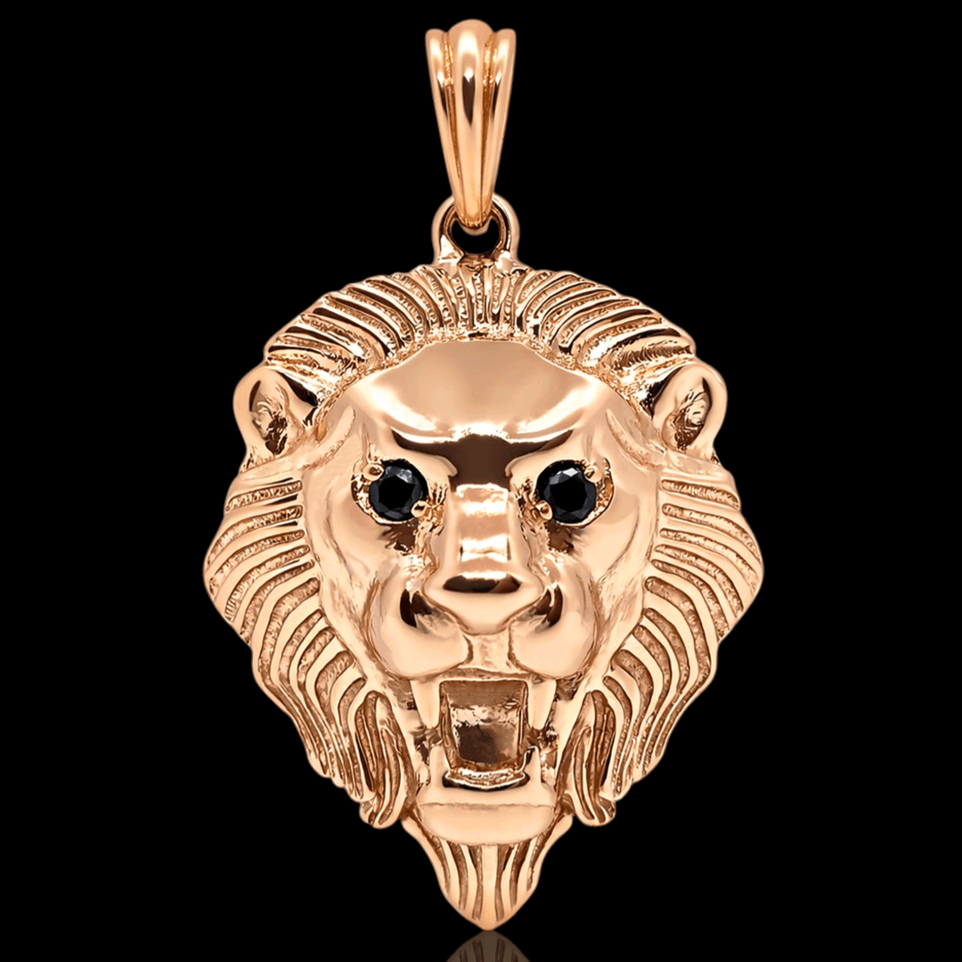 Šis raudono aukso spalvos liūto pakabukas išsiskiria detaliu ir prabangiu dizainu. Kruopščiai išdirbtos formos suteikia jam išraiškingumo ir charakterio. Akyse inkrustuoti juodi deimantai kuria paslaptingą ir išskirtinį žvilgsnį. Skirtas žmogui, kuris vertina išskirtinumą ir nori pabrėžti savo stiprią asmenybę.