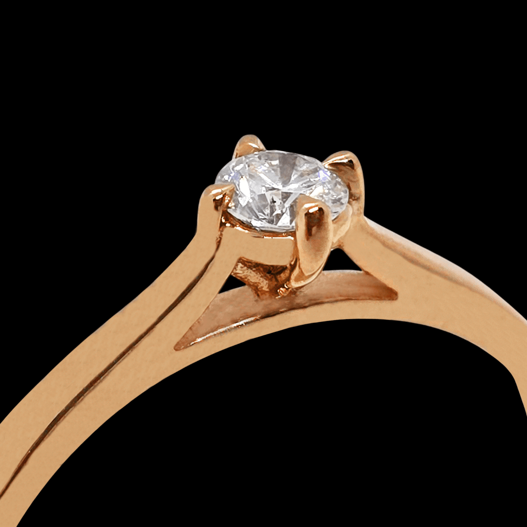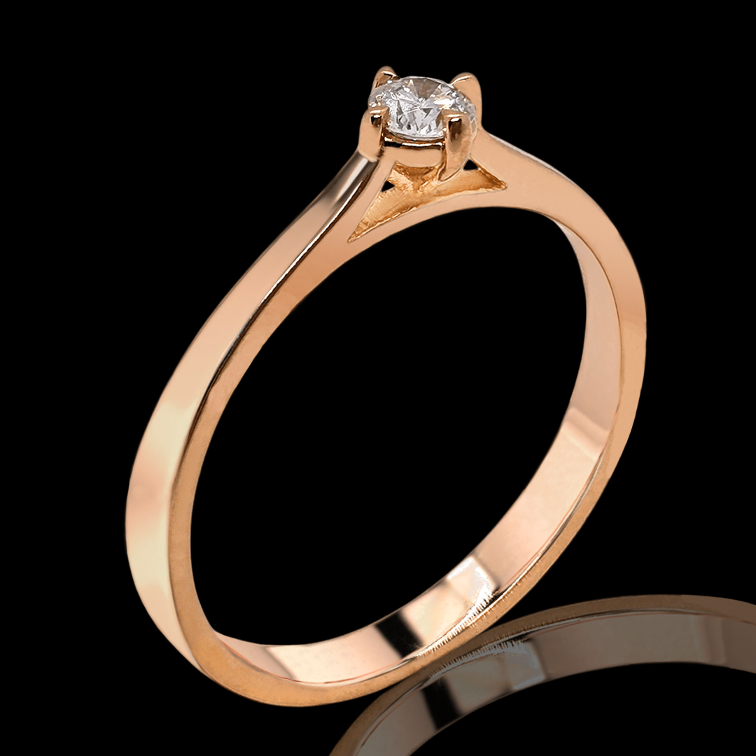 Raudono aukso sužadetuvių žiedas su deimantu.