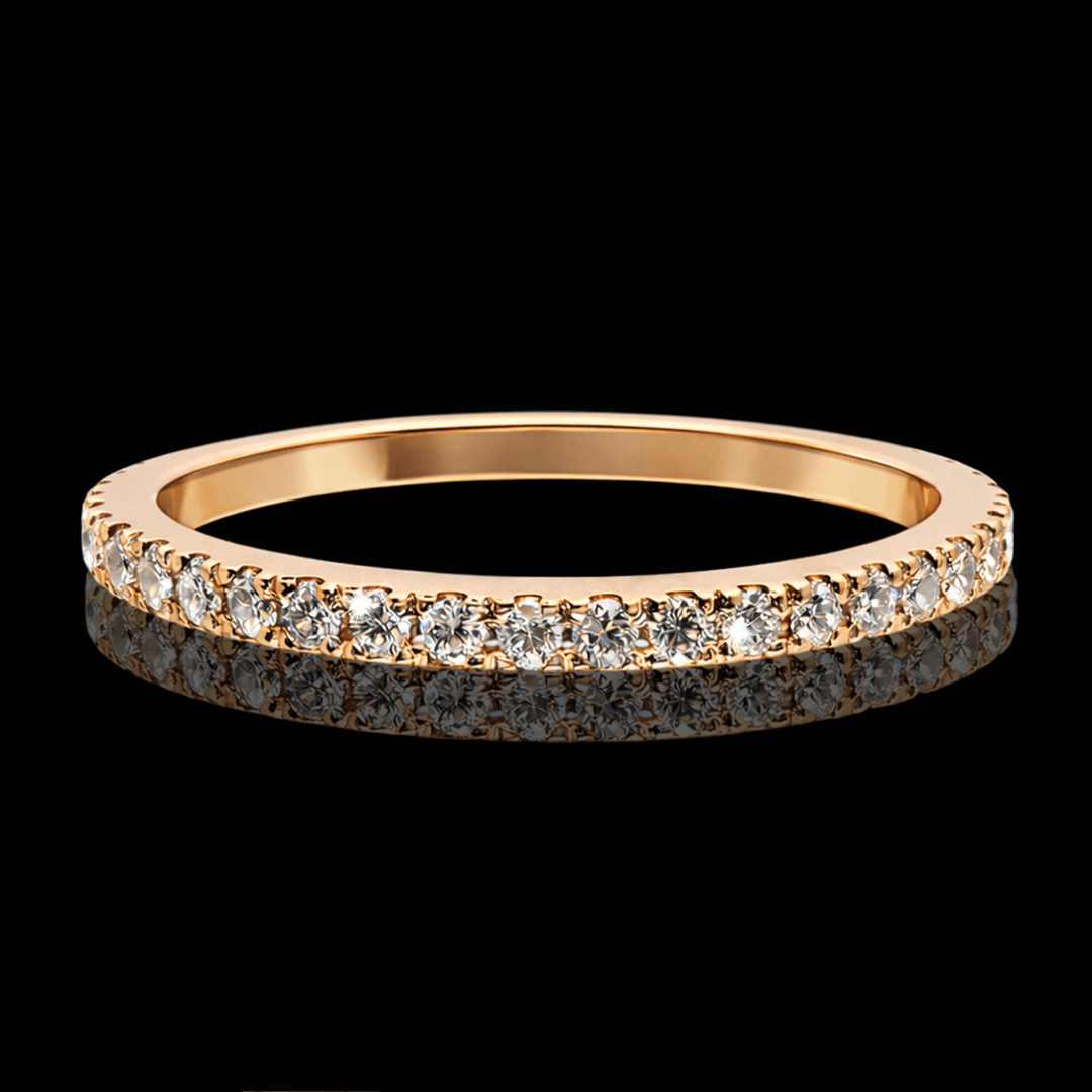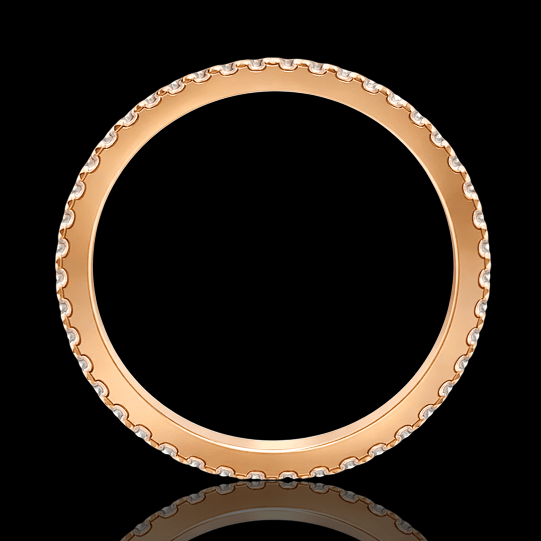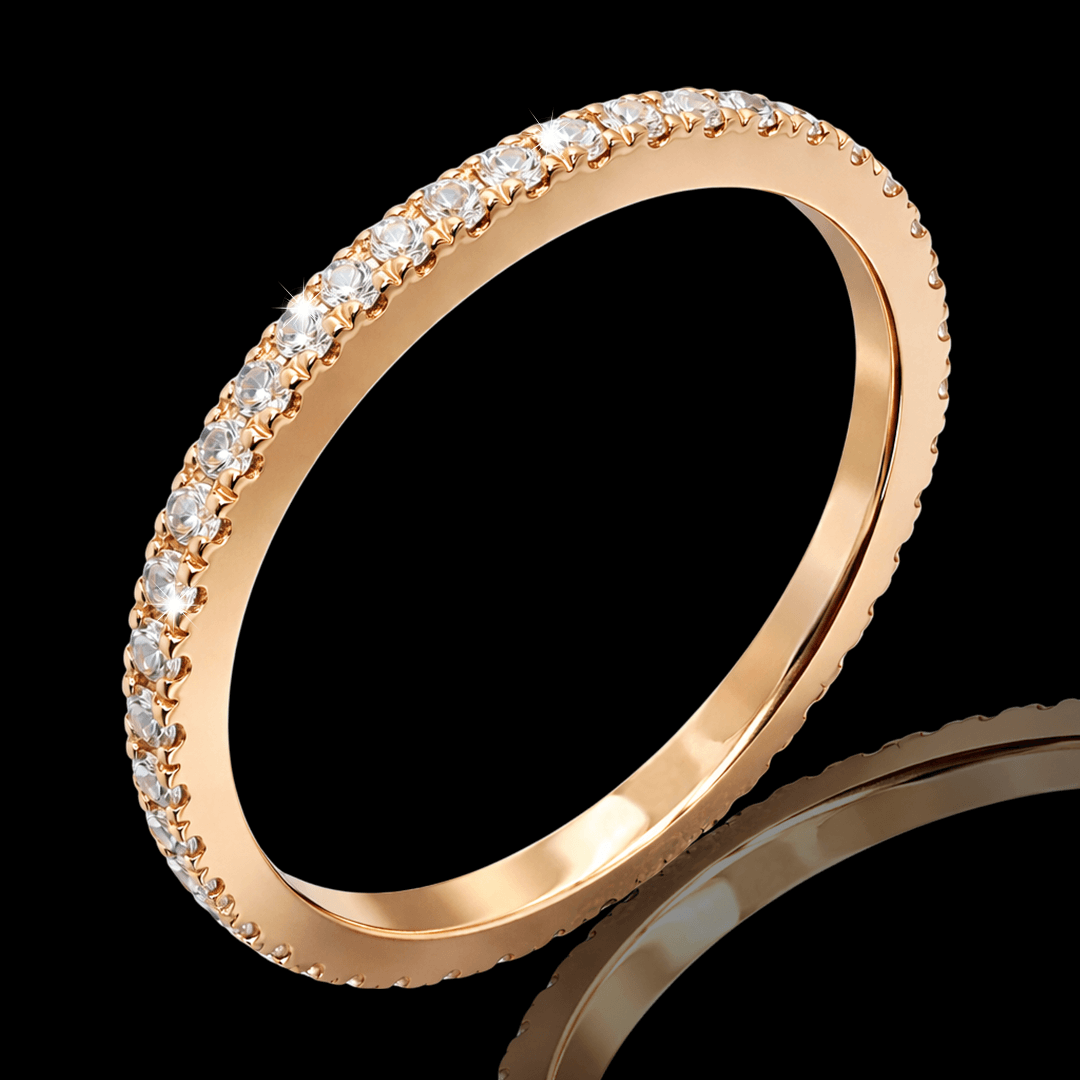 Raudono aukso žiedas su briliantais. Žiedą visu ratuku puošia 41 vienetas ypač skaidrių briliantų. Šį žiedą galime pagaminti pagal jūsų norimą dydį ar aukso spalvą, dėl užsakymo susisiekite privačiai.