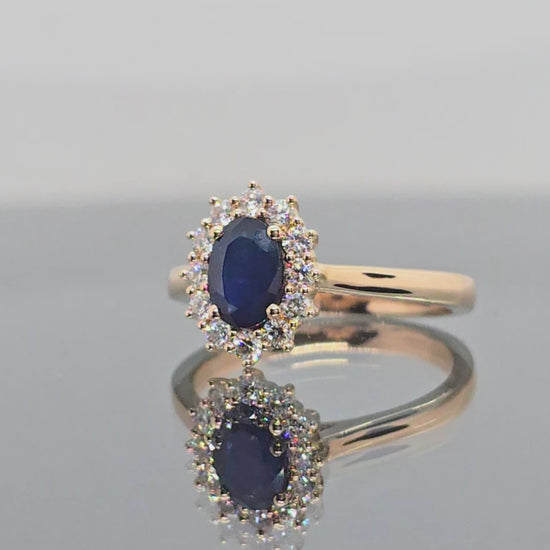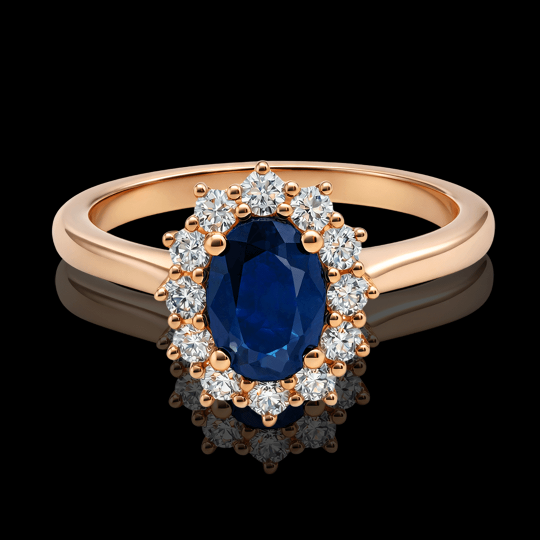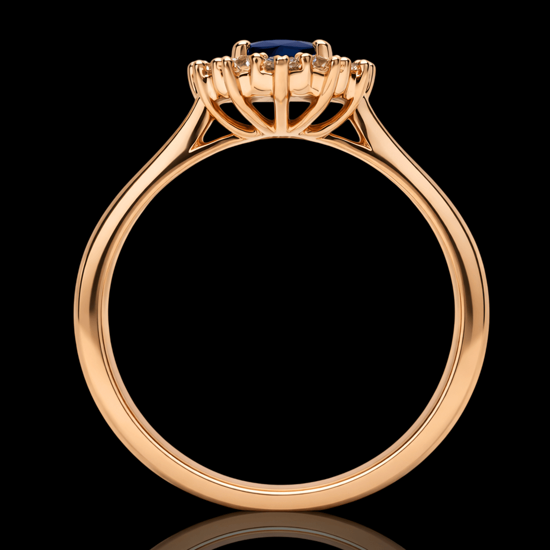 Raudono aukso žiedas su deimantais ir safyru